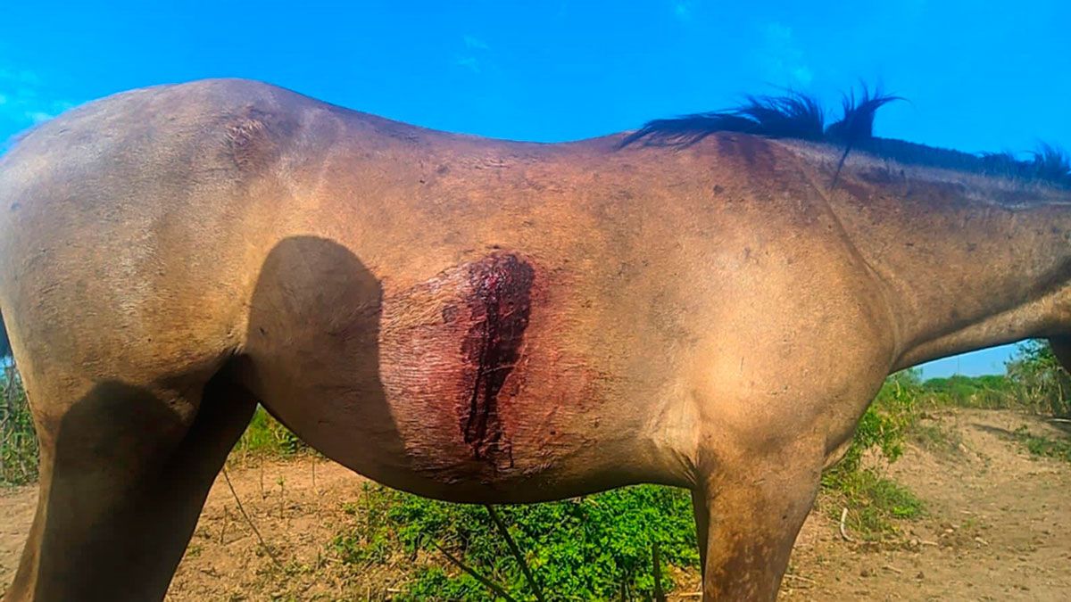 Como consecuencia del hecho, una yegua preñada perdió su cría debido a las graves heridas sufridas. La denuncia fue radicada y las autoridades se encuentran investigando lo sucedido.