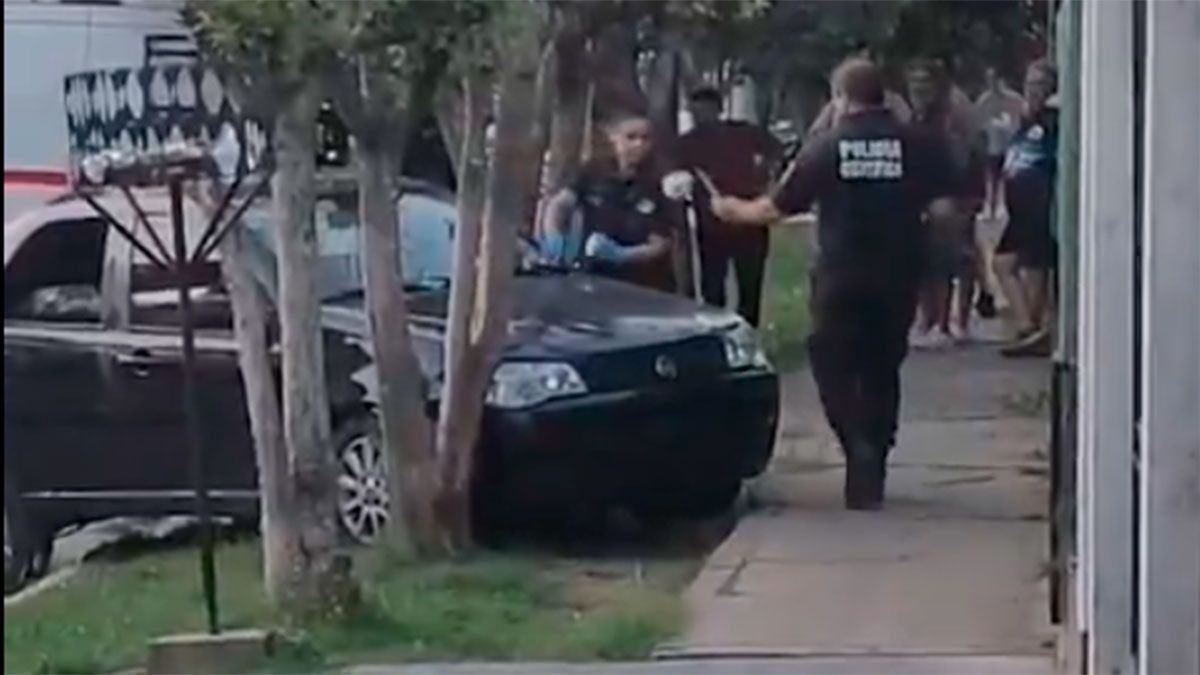 El Siena de Giménez quedó subido arriba de la vereda, muy cerca del portón de una casa. El asesino todavía sigue prófugo y es intensamente buscado.