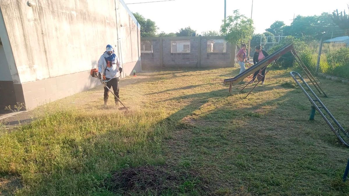 Desde la comisión municipal impulsaron el operativo de limpieza y desmalezamiento en establecimientos educativos.