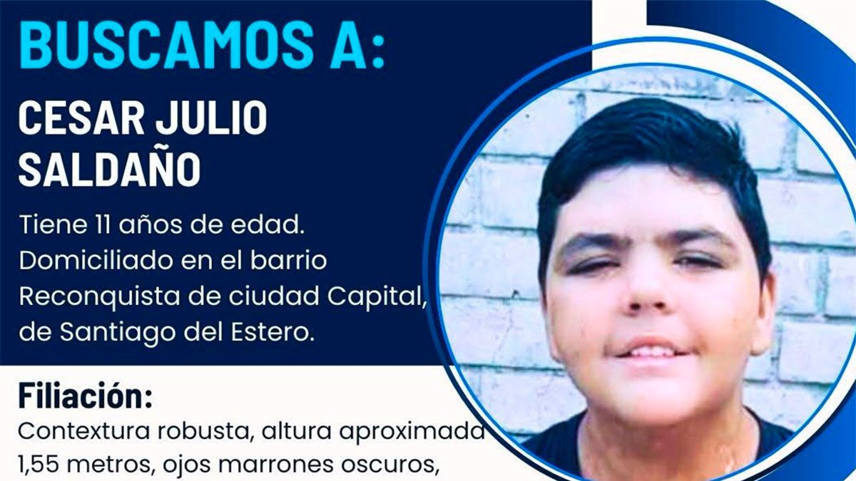 Efectivos de la División Búsqueda de Personas se encuentran realizando un operativo para localizar a Cesar Julio Saldaño, un niño de 11 años domiciliado en el barrio Reconquista, quien se ausentó de su hogar el pasado viernes, alerededor de las 17 horas y no regresó hasta el momento.