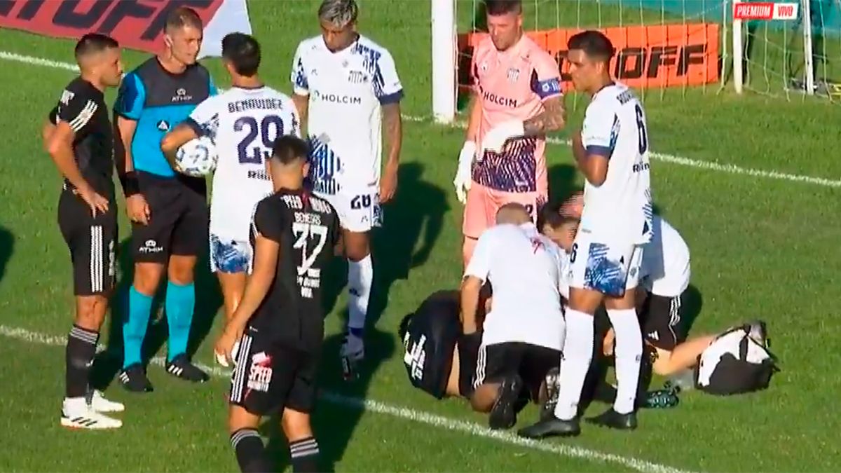 La lesión se produjo en el inicio del segundo tiempo, cuando Tovo intentó anticipar de cabeza al arquero Guido Herrera en una jugada ofensiva. Al caer, su pierna quedó trabada en el césped, lo que provocó una doblez antinatural que encendió la preocupación inmediata de sus compañeros y rivales.