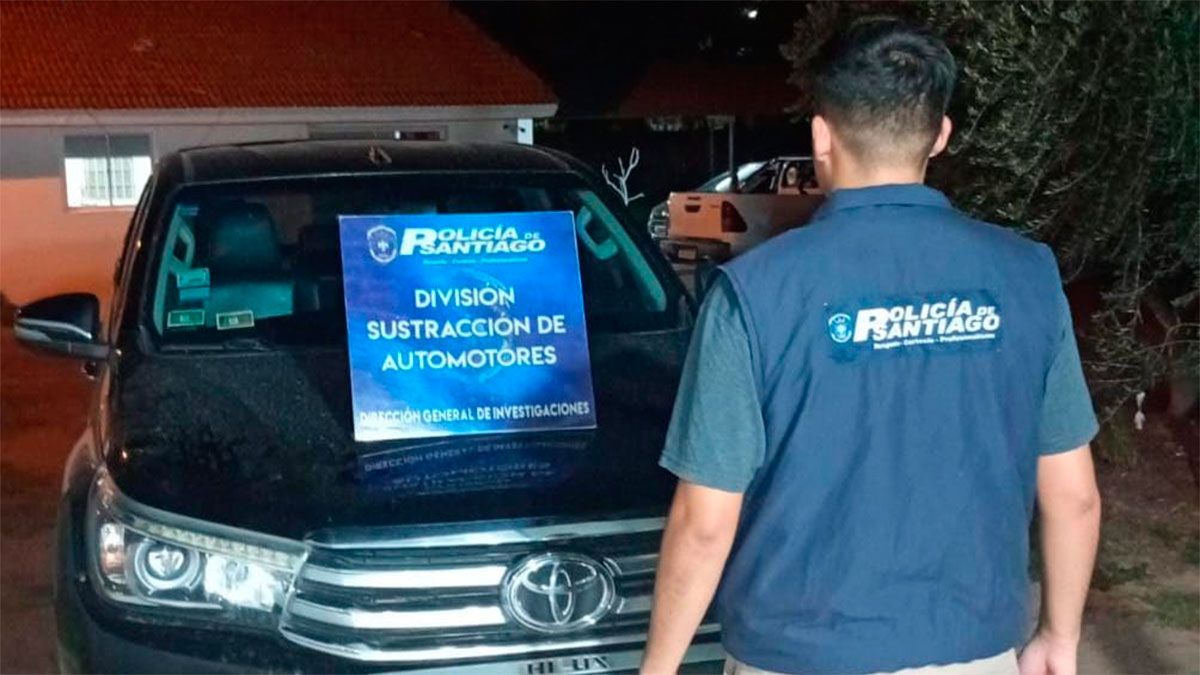 En el marco de una investigación por presunta estafa, personal de la División Sustracción de Automotores de la policía de Santiago del Estero secuestró una camioneta Toyota Hilux en la intersección de avenida Lugones e Hipólito Yrigoyen.