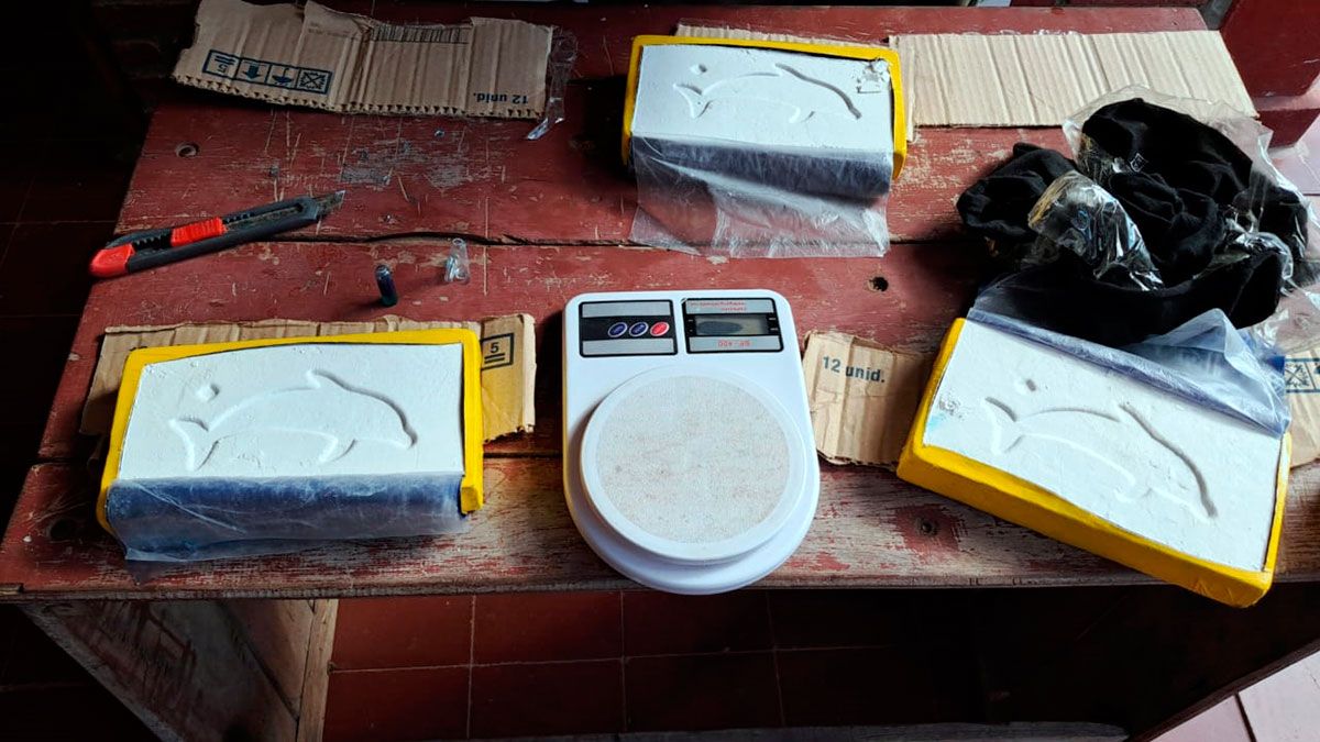 Las pruebas de campo narcotest realizadas en el lugar confirmaron que los paquetes contenían cocaína, con un peso total de 3 kilos 095 gramos. Ante la evidencia, los gendarmes procedieron con la detención del sospechoso y la incautación de la droga, así como su celular.