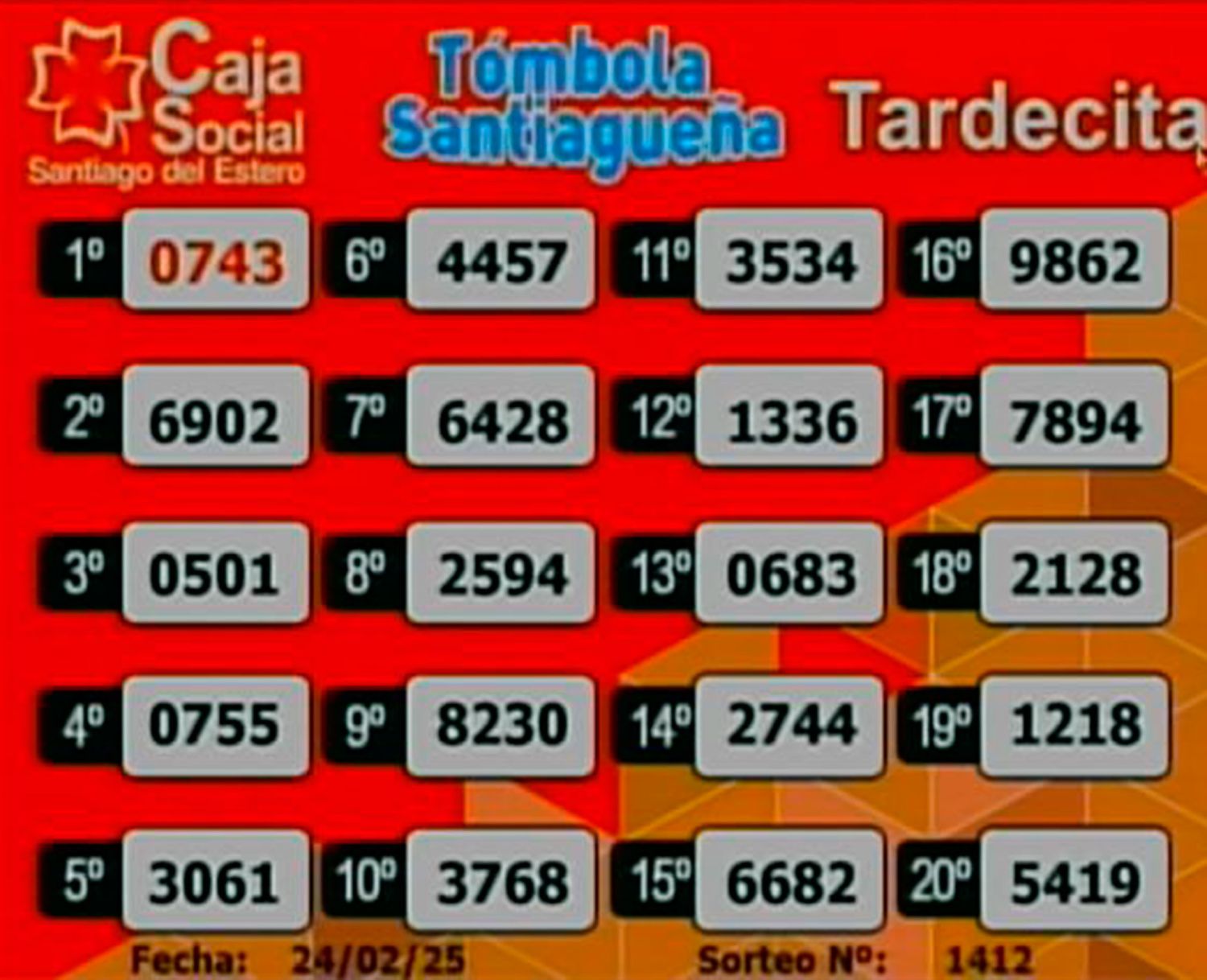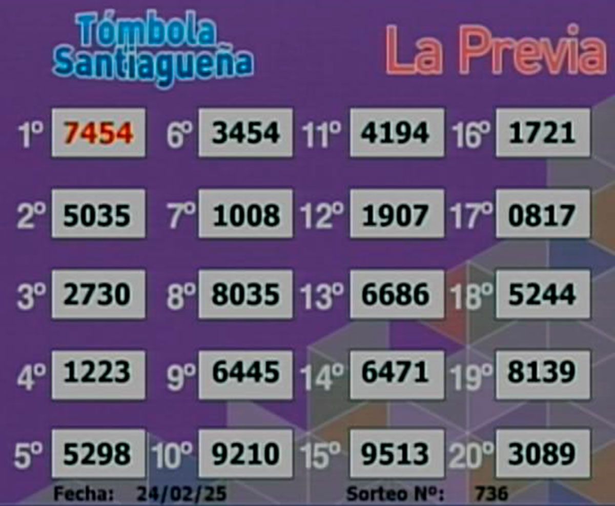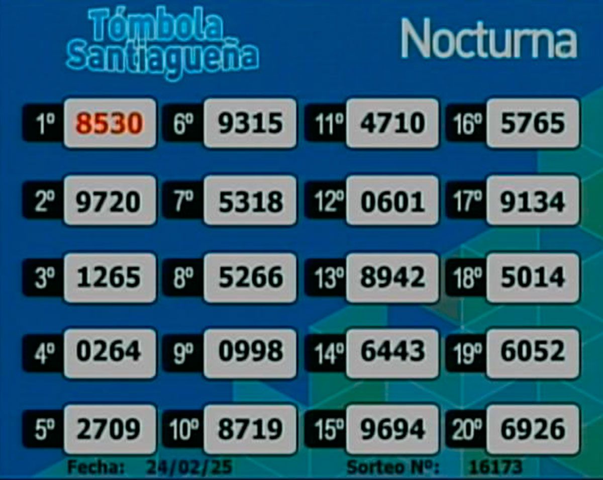 Este lunes 24 de febrero del 2025, como todos los días, se llevó a cabo un nuevo sorteo de la Tómbola Santiagueña.