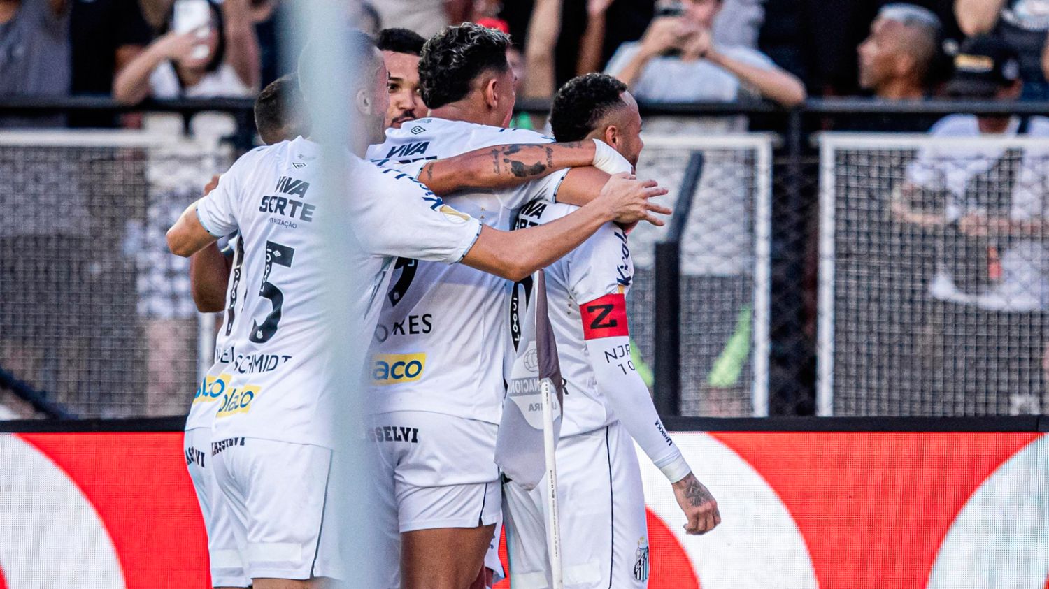 A los 27 minutos del primer tiempo, Neymar ejecutó un córner que terminó en gol olímpico, tras superar al arquero con una curva perfecta. Antes de patear, respondió con gestos a los hinchas rivales que lo habían abucheado, y en su festejo, se sentó sobre los carteles publicitarios mirando a la tribuna.