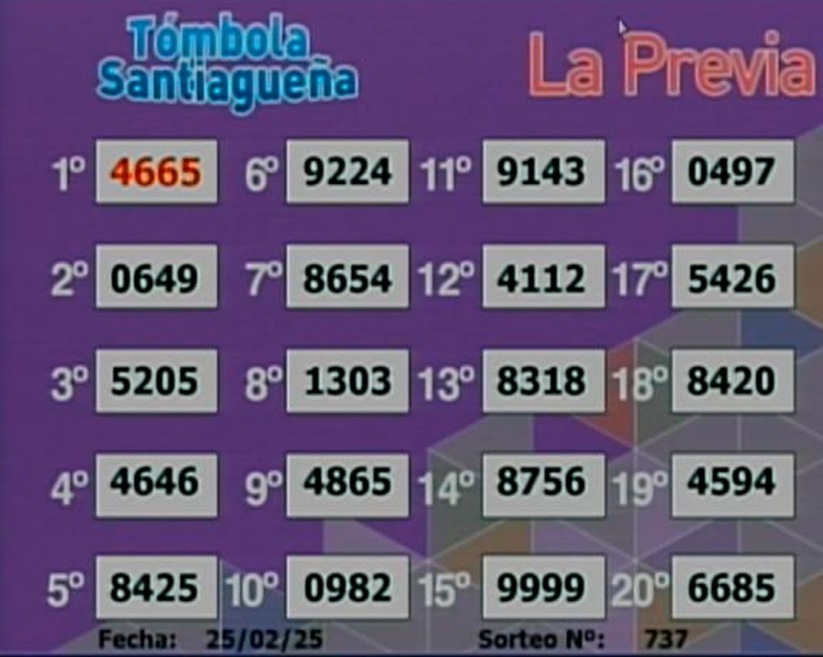 Este martes 25 de febrero del 2025, como todos los días, se llevó a cabo un nuevo sorteo de la Tómbola Santiagueña.