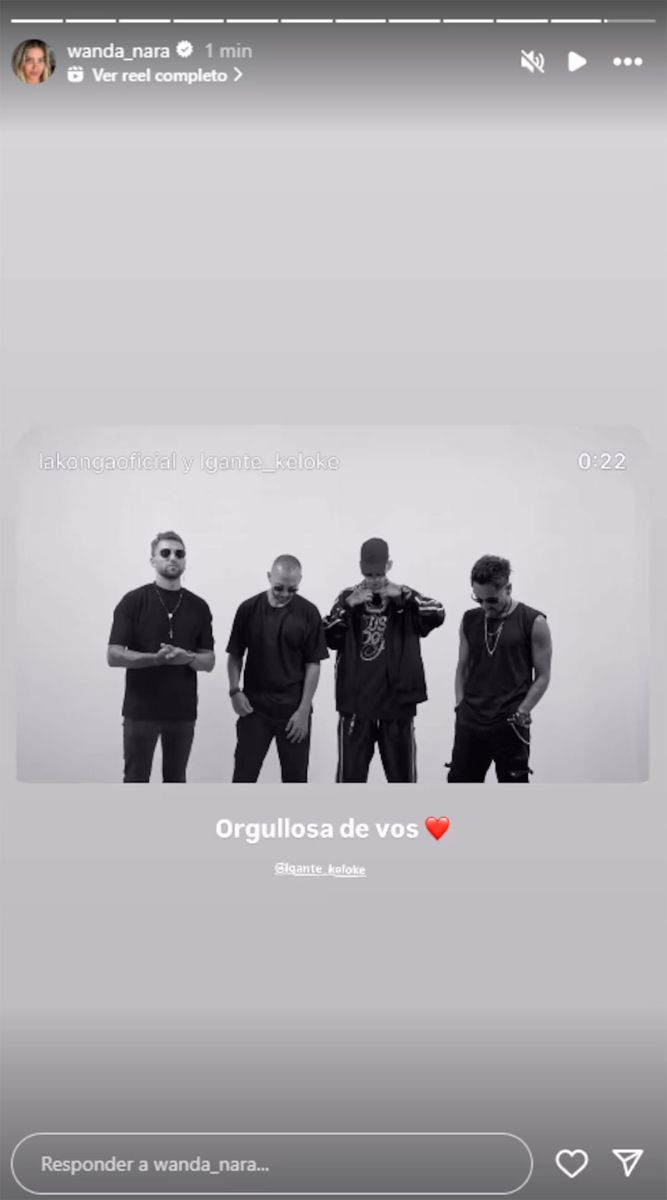 Luego de que el referente de la Cumbia 420 anunciara el lanzamiento de “Delincuente”, su colaboración con La Konga, ella compartió la publicación. “Orgullosa de vos”, puso en sus historias de Instagram, junto al emoji de un corazón rojo, arrobando a su pareja.