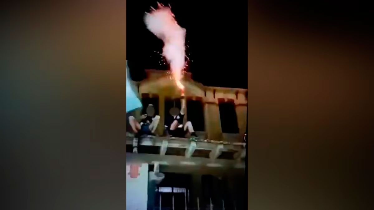 La secuencia tuvo lugar durante la madrugada del pasado lunes, cuando un joven, cuya identidad no trascendió, manipulaba un mortero mientras estaba sentado sobre el techo de una estructura en el ingreso de la Escuela Normal Superior “Osvaldo Magnasco”.