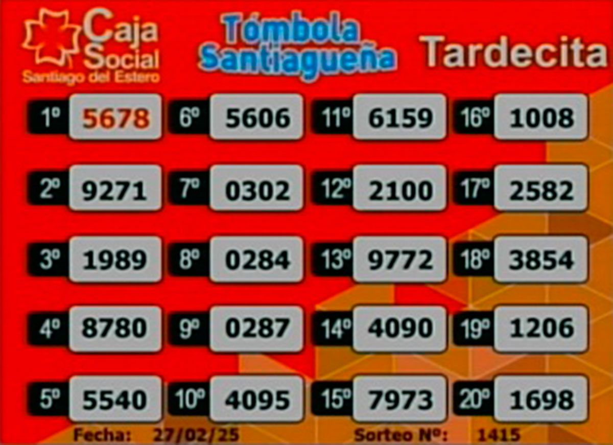 Este jueves 27 de febrero del 2025, como todos los días, se llevó a cabo un nuevo sorteo de la Tómbola Santiagueña.