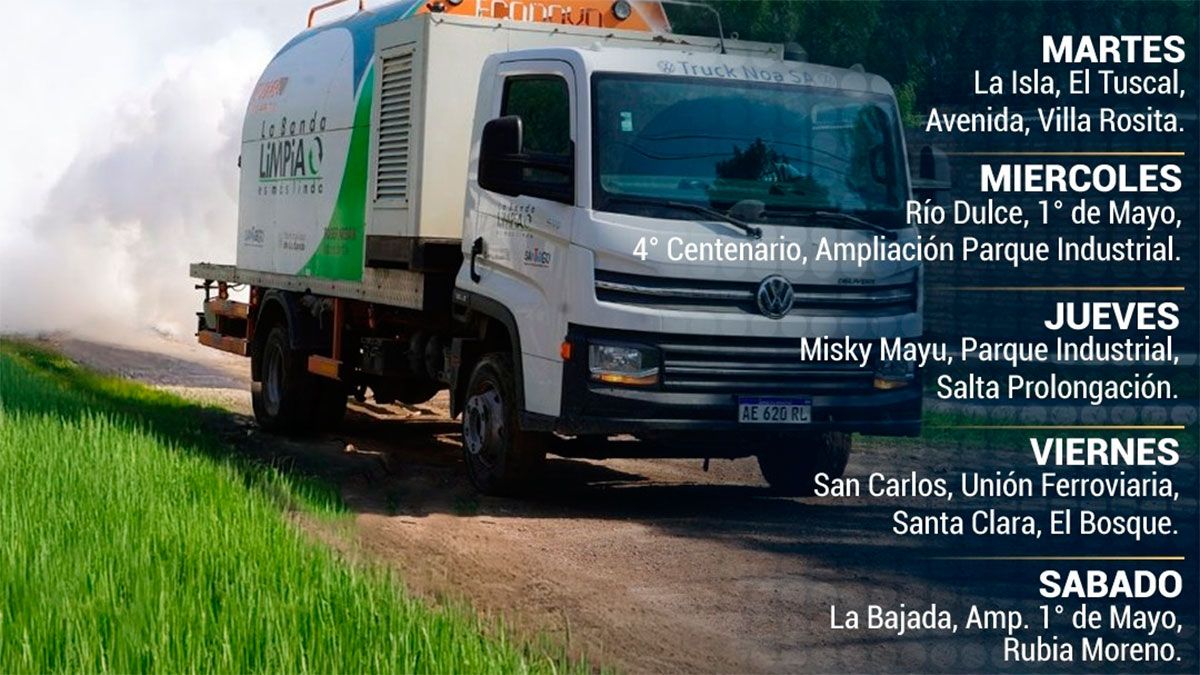 De este modo, las fumigaciones comenzarán el martes 4 y abarcarán los barrios, La Isla, El Tuscal, Avenida y Villa Rosita. El miércoles 5, continuarán en barrio Río Dulce, Primero de Mayo, 4to. Centenario y Ampliación Parque Industrial.