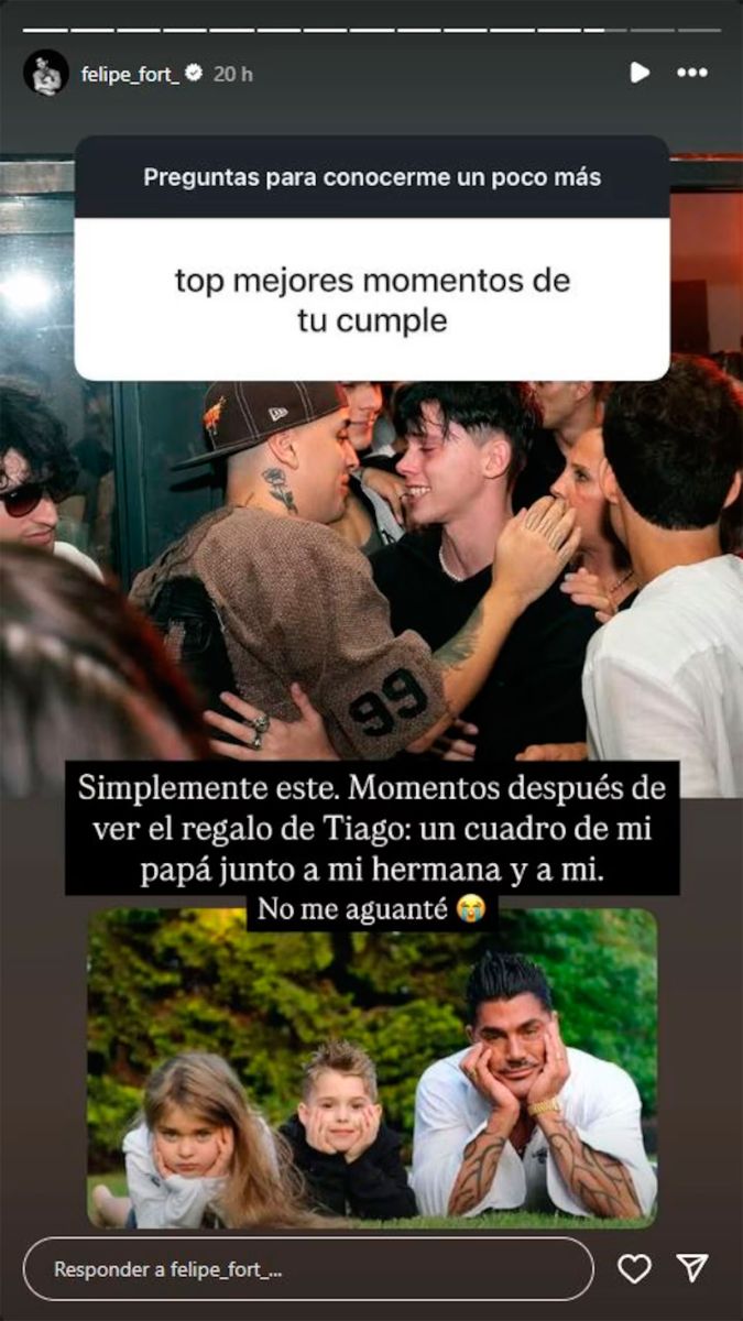 En medio de las consultas que varias personas realizaron, una en particular permitió al hijo de Ricardo Fort revelar lo más emotivo que vivió en medio de su megacelebración. Alguien le pidió un top de los mejores momentos de su día especial, y él en respuesta solo pudo escoger uno.