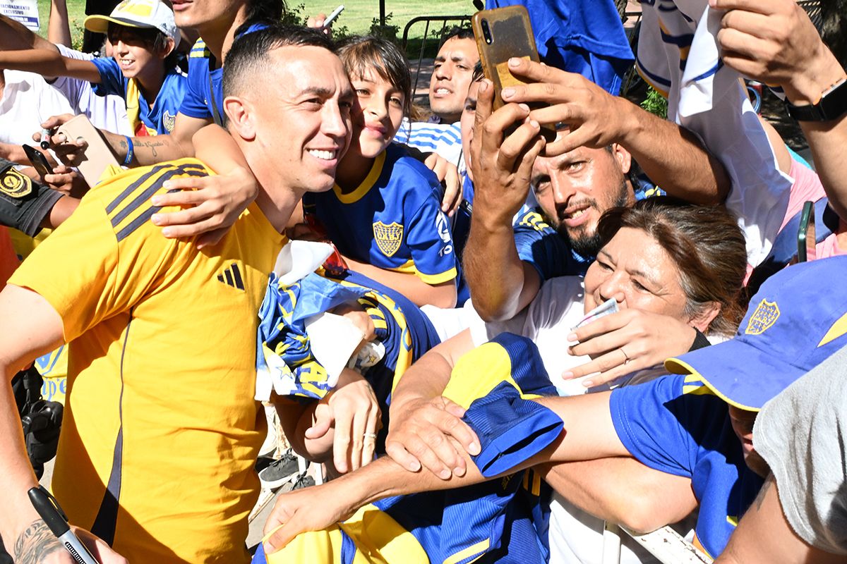 Tras el arribo, los jugadores de Boca se acercaron a la gente para recibir el calor de sus hinchas que los estaban esperando, como así también sacarse fotos y firmar autógrafos.