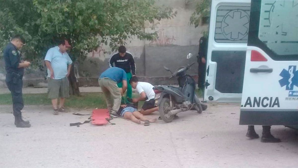 Personal policial y una ambulancia municipal asistieron a la víctima, identificada como Aylen Anriquez, y la trasladaron al hospital local.