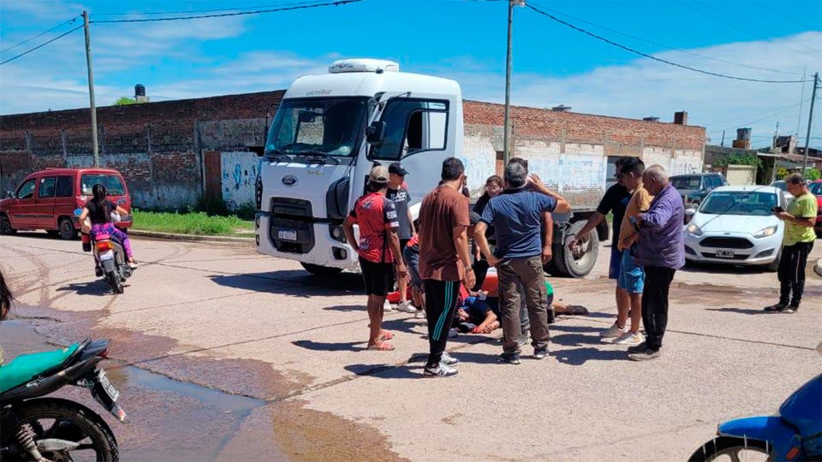 Pasado el mediodía de este martes, un motociclista resultó herido al protagonizar un fuerte choque contra un camión en la intersección de las calles Chacabuco y Gobernador Barraza.