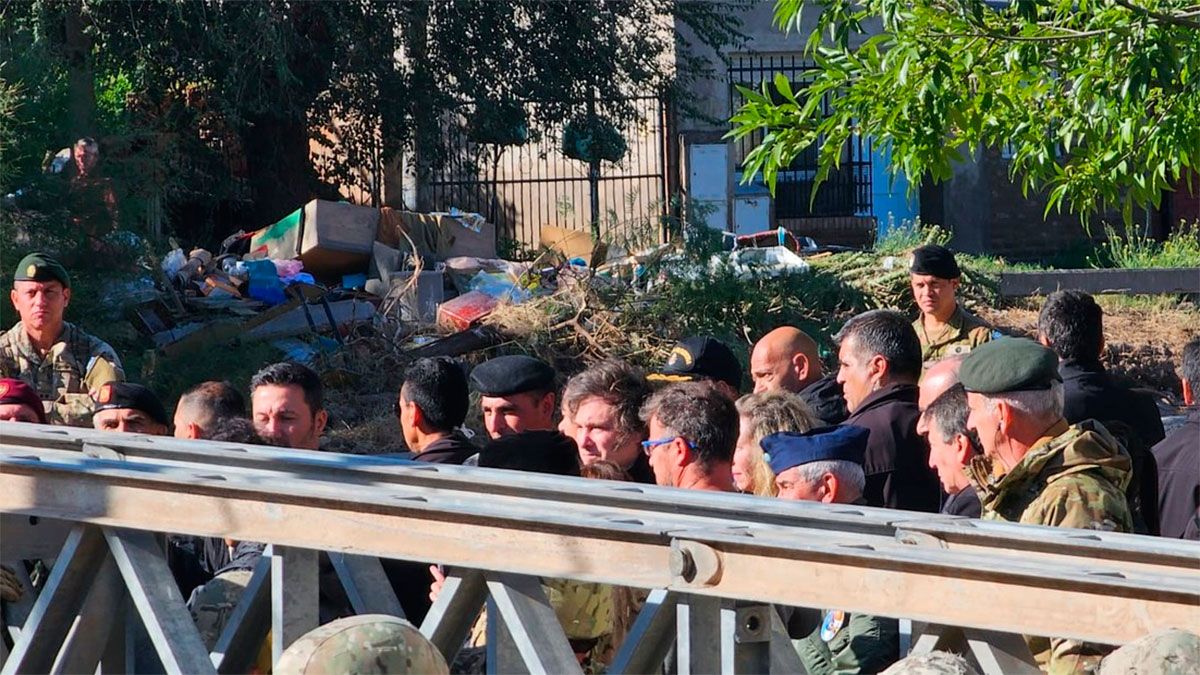 El viaje se realizó bajo estricta reserva y confidencialidad para "evitar la politización". Milei arribó sin cámaras y acompañado por una comitiva reducida. En la ciudad, se reunió con los ministros Patricia Bullrich y Luis Petri, quienes ya se encontraban en la zona desde el fin de semana, y con el intendente Federico Susbielles.
