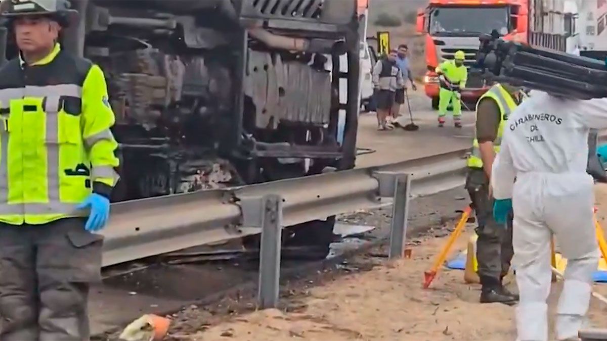 El accidente se produjo en torno a las 5 de este viernes, cerca de la localidad de Las Tacas, a unos 475 kilómetros al norte de la capital chilena en una ruta vital de ese país dado que lo uno de norte a sur.