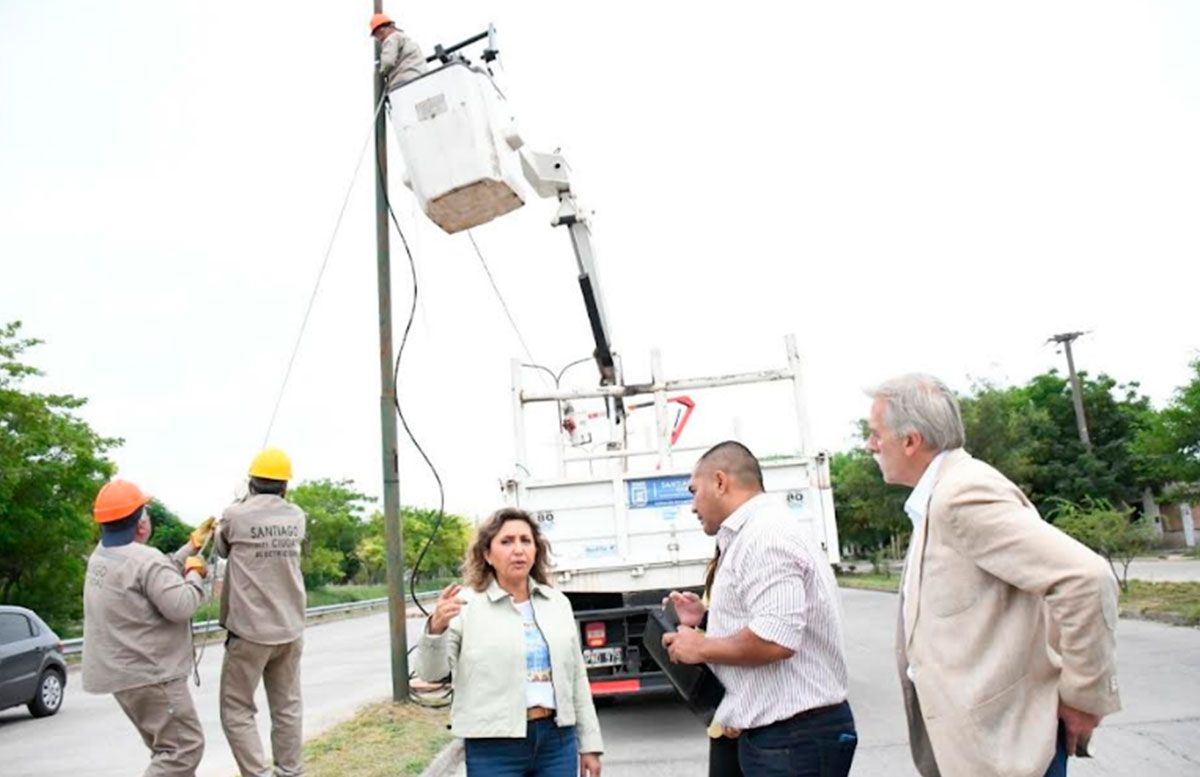 La intendente de la Capital, Ing. Norma Fuentes, supervisó las tareas de restauración del alumbrado público de la avenida Lugones, entre la avenida Solís y la colectora de la Circunvalación; con el propósito de recuperar las luminarias vandalizadas.