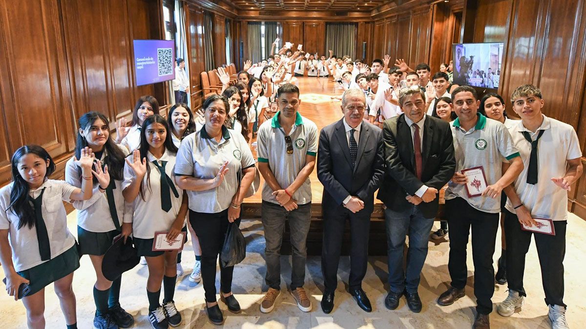 En este marco, el jefe de Gabinete dio un cálido recibimiento a los estudiantes en el Salón de Acuerdos “Juan Felipe Ibarra”.