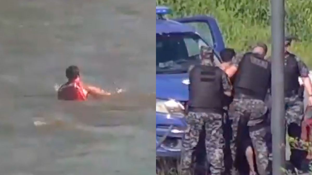 En medio de un forcejeo, el hombre intentó huir, corriendo varias cuadras, hasta llegar a la orilla del río. En un intento desesperado por escapar, se arrojó al agua, cruzando al otro lado mientras era seguido de cerca por las autoridades. Gracias a la monitoreada intervención de las cámaras de seguridad, los efectivos lograron localizarlo y finalmente detenerlo.