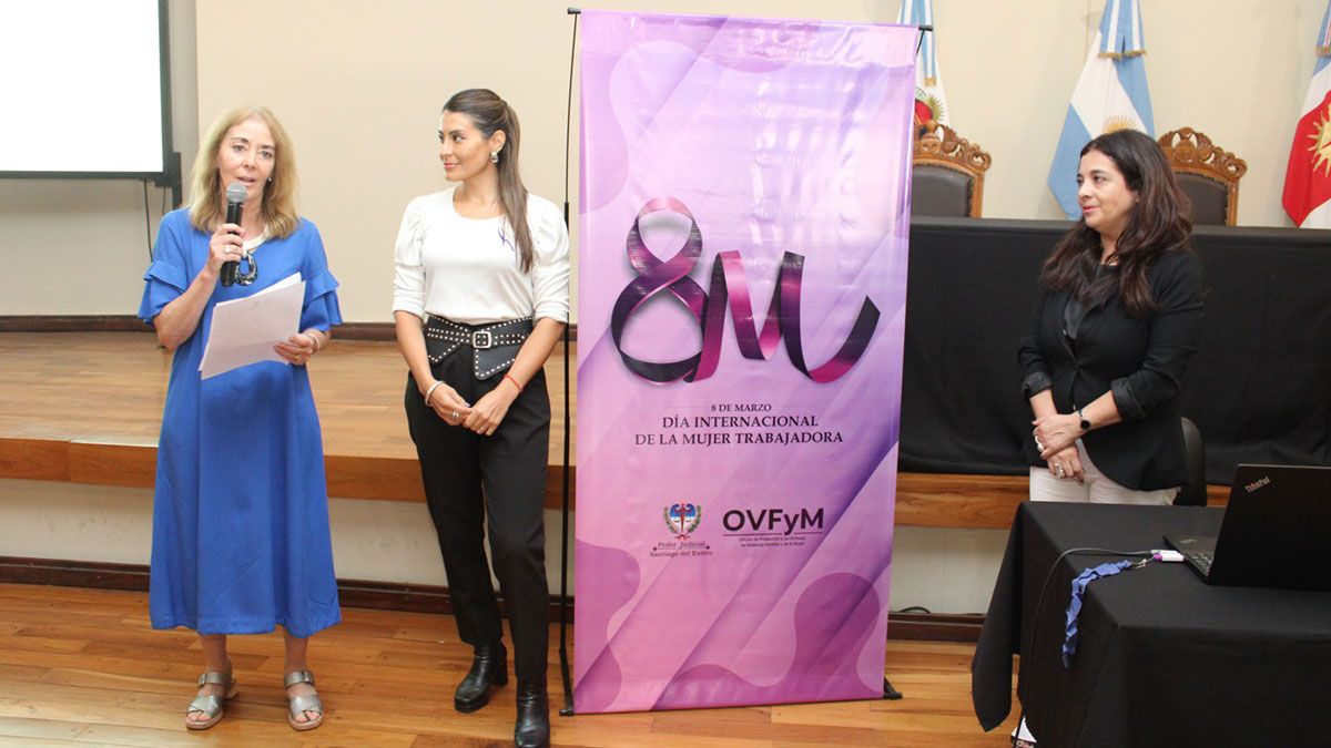 Seguidamente, dio comienzo la propuesta a cargo de la Lic. Claudia Osorio Meneghini y Guadalupe Carreras, jefa del Área de la Mujer e integrante de equipo interdisciplinario de la Oficina de Protección a la Víctimas de Violencia Familiar y la Mujer (OVFyM), del Poder Judicial.