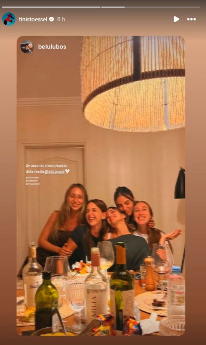 “Arrancando el cumpleaños de la monita”, escribió una de sus amigas en la historia, que rápidamente la cantante de “El Cielo” replicó en sus propias redes sociales, lo mismo hicieron las otras asistentes a la cena. En la foto que eligieron para marcar el inicio de esta fecha se puede ver a la actriz de Violetta, novela que la lanzó al estrellado en el año 2012, con una gran sonrisa.