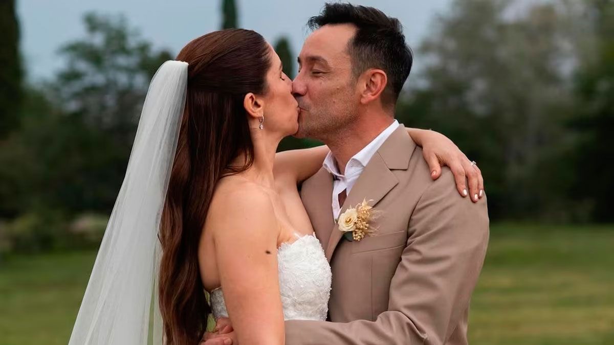 La boda se habría celebrado el sábado 22 de marzo y recién el domingo el cantante realizó el anuncio que vino acompañado por románticas fotografías de su gran día. En una de las postales, aparecen corriendo al aire libre, ella con un vestido de novia muy clásico, con velo y corte corazón. Mientras que el cantautor optó por un traje en tono ocre.