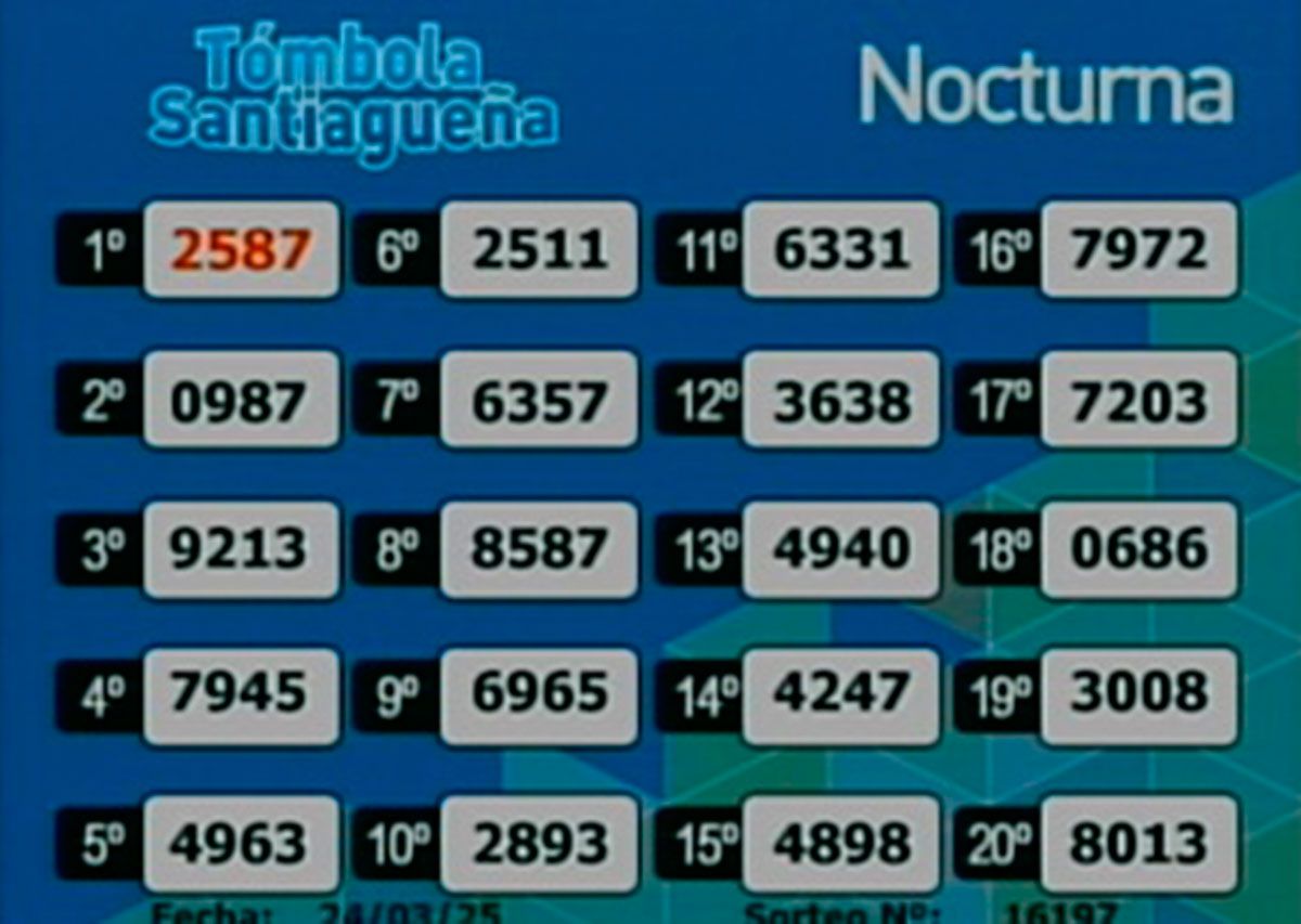 Este lunes 24 de marzo del 2025, como todos los días, se llevó a cabo un nuevo sorteo de la Tómbola Santiagueña.