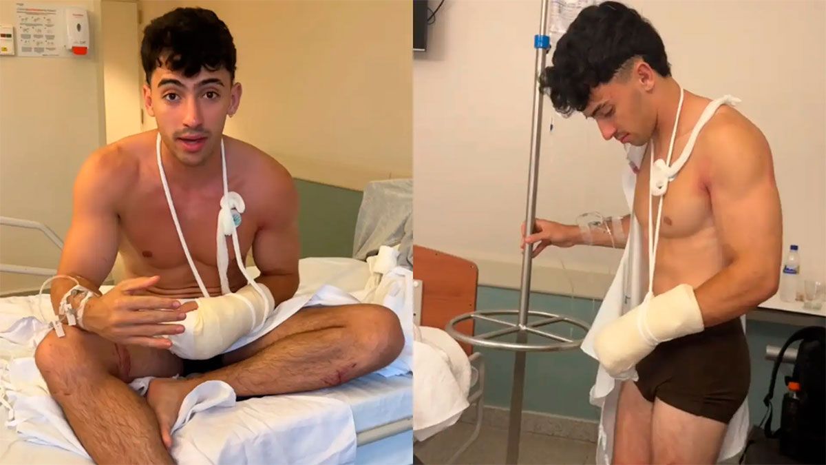 Más tarde, publicó un video desde el hospital tras ser operado, donde contó que los médicos aún no confirmaron si perderá definitivamente los dedos.