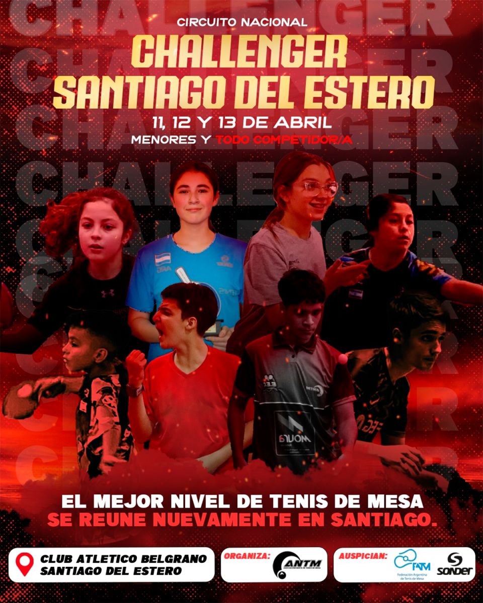 El Challenger Nacional de Tenis de Mesa se disputará en Santiago del Estero del 11 al 13 de abril, con el club Belgrano como sede del evento.