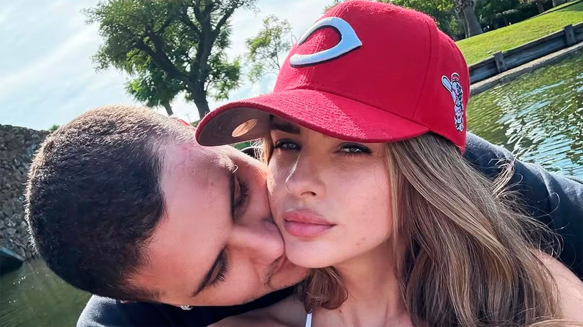 Complementó el traje de baño con una cap de béisbol roja con detalles bordados en blanco, de los Cincinatti Reds.