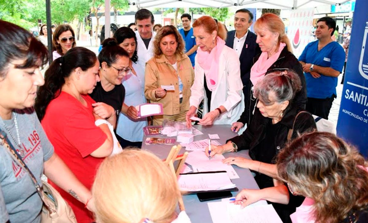 Por el día mundial del cáncer de cuello uterino, la intendente de la Capital, Ing. Norma Fuentes, visitó el stand de concientización y promoción de medidas preventivas instalado por la Fundación Mujer en la plaza Libertad.