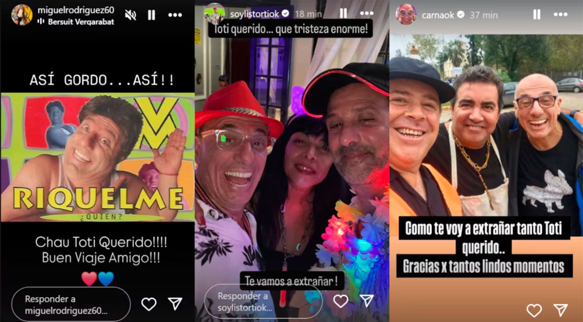 A ellos se sumó el recuerdo de Carna: “Como voy a extrañar, Toti querido. Gracias por tantos lindos momentos”.