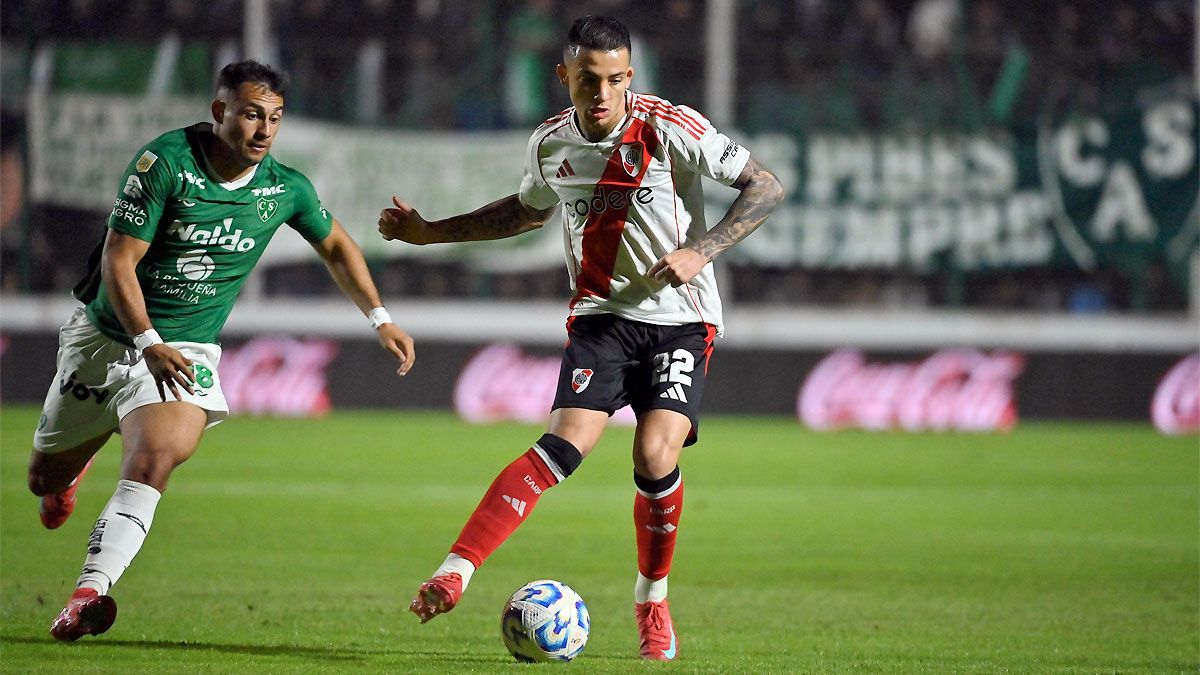 El encuentro comenzó parejo, con escasas situaciones de gol. Primero fue Lucas Acosta quien salvó al Verde con una doble atajada brillante, y luego Franco Armani respondió en el arco de enfrente. A los 30 minutos, Nacho Fernández habilitó a Franco Mastantuono, que desbordó por izquierda y envió un centro al primer palo para la aparición de Miguel Borja, que anticipó a todos y rompió una sequía de siete partidos sin convertir.