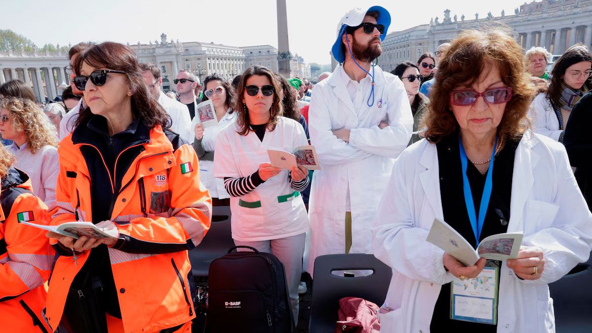 Además, Bergoglio se dirigió a los médicos, enfermeros y miembros del personal sanitario presentes en San Pedro y en el mundo entero para encomiar su labor atendiendo a sus pacientes.