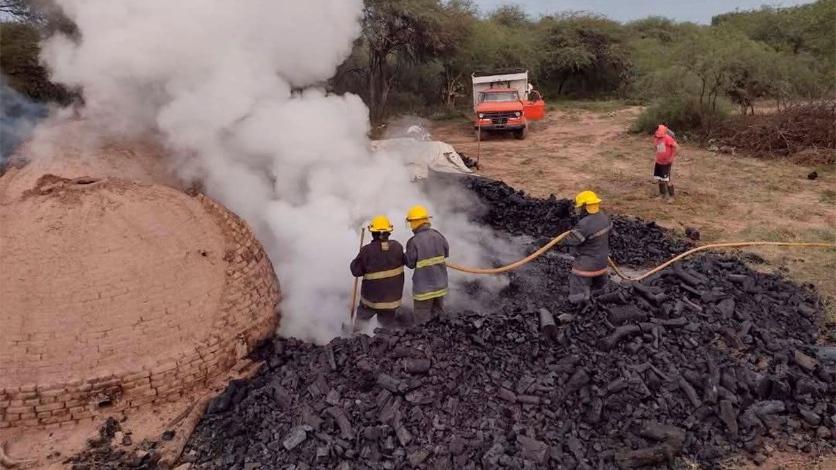 Un incendio de grandes proporciones se desató esta mañana en un horno de carbón vegetal ubicado en el paraje La Salamanca, sobre la Ruta Provincial N° 7, a unos 30 kilómetros de Añatuya.