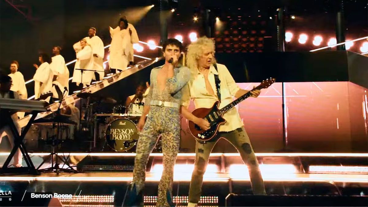 La emocionante performance se produjo hacia el final del set de 11 canciones que llevó Boone para su debut en el festival. En un gesto de respeto y admiración hacia la banda británica, Benson apareció en escena luciendo una capa de armiño, similar a la que Freddie Mercury utilizó durante la gira de despedida de Queen en 1986.