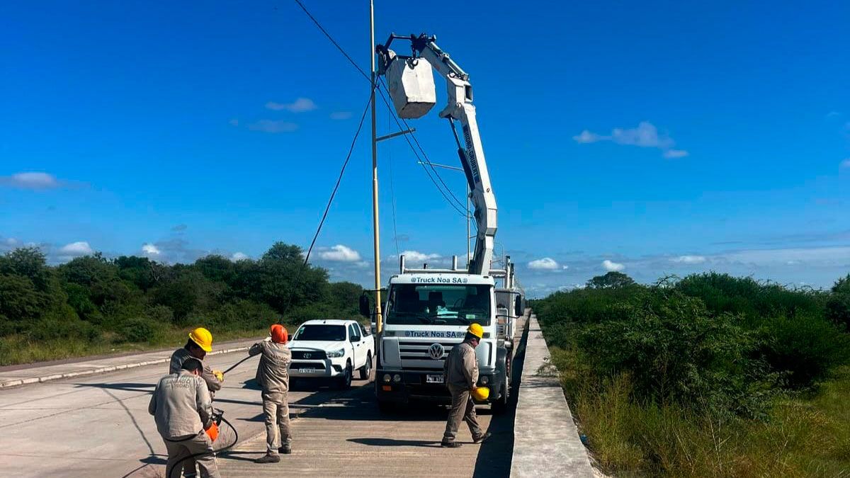 Trabajadores del área de Electricidad de la Capital llevan a cabo tareas para restablecer las luminarias en el tramo entre la avenida Solís y el camino de San Esteban.