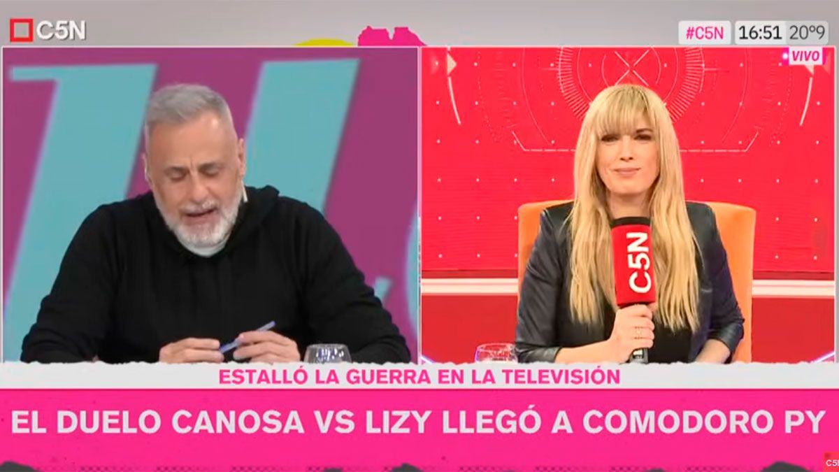 Viviana Canosa visitó el programa de Jorge Rial, «Argenzuela», por C5N. La entrevista se dio en el contexto de la denuncia que presentó Canosa en Comodoro Py junto con su abogado, donde acusa a Costa y Lizy Tagliani de formar parte de una red de trata de menores.