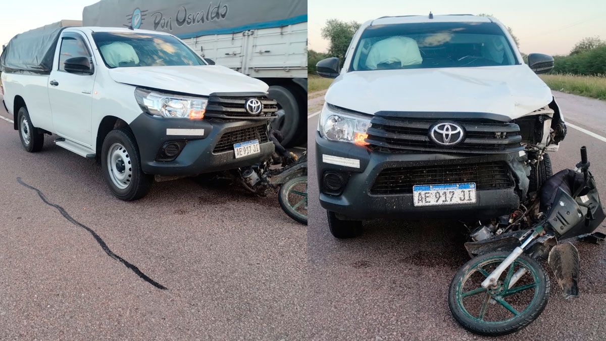 Allí una camioneta Toyota Hilux conducida por Dardo Alberto Morcillo, colisionó desde atrás a una motocicleta Motomel 110 cc, conducida por Javier Alejandro Domínguez. De acuerdo al informe policial la camioneta circulaba de norte a sur cuando impactó violentamente contra la motocicleta.