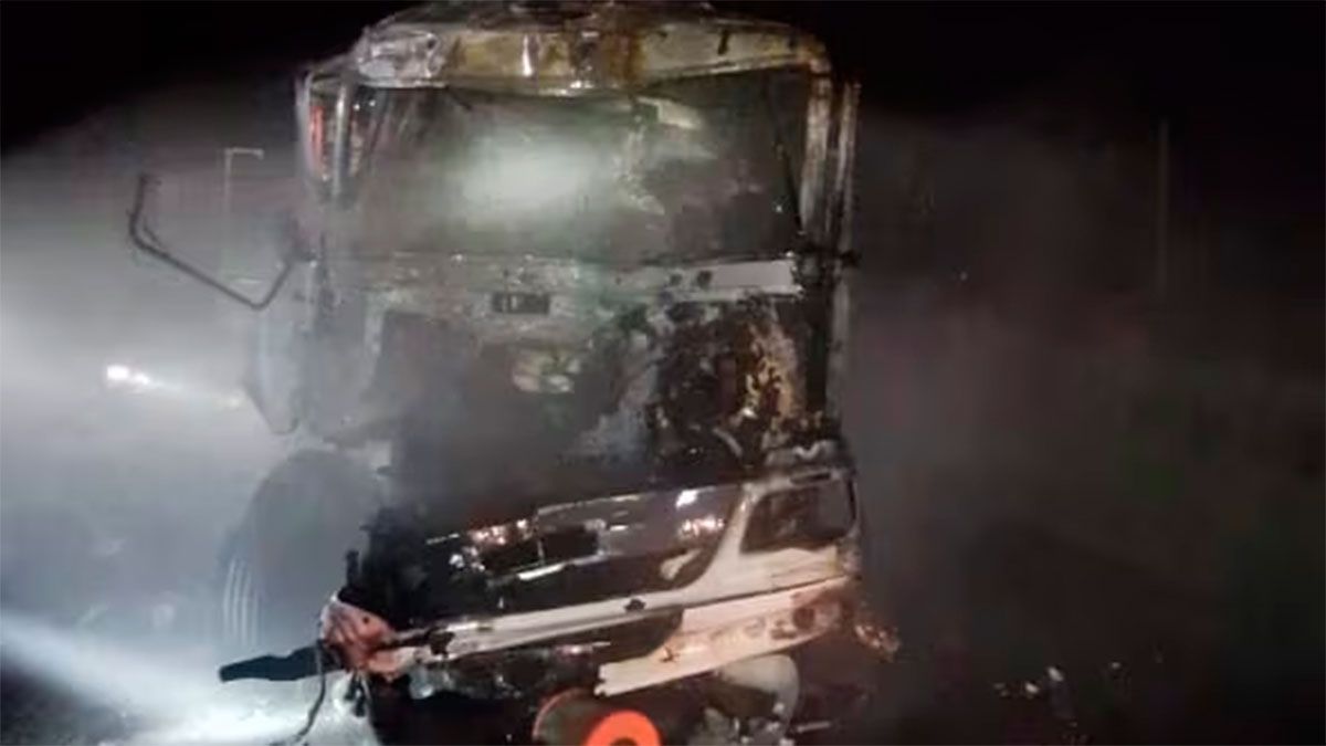 El horrendo siniestro sucedió cerca de las 22 en el kilómetro 212 cuando un camión (con marca no visible), conducido por Alberto Villarroel, embistió a un Ford 600 cargado con soja.
