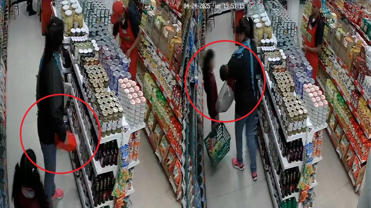 La escena fue captada por las cámaras de seguridad del local. La sospechosa actuó junto a su hija menor de edad. Mirá.