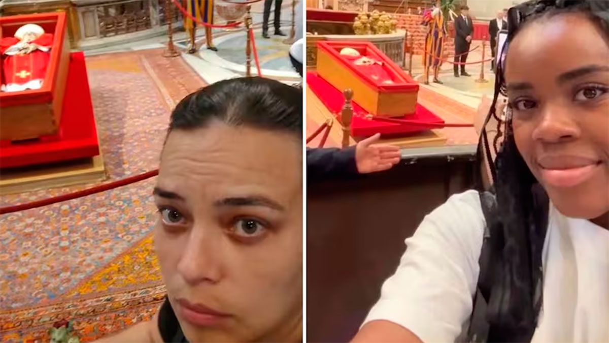 No todos mostraron el debido respeto. Varias imágenes se viralizaron en redes sociales de dos mujeres que se sacaron fotos con el cuerpo del Papa. En una de las dos, se incluyó un video, donde una mujer mira para los costados y levanta su celular para capturar el momento. De fondo, se ve al papa Francisco en su ataúd, con un rosario entre sus manos y vestido con su mitra blanca y túnica papal roja, que simboliza la sangre de Cristo.