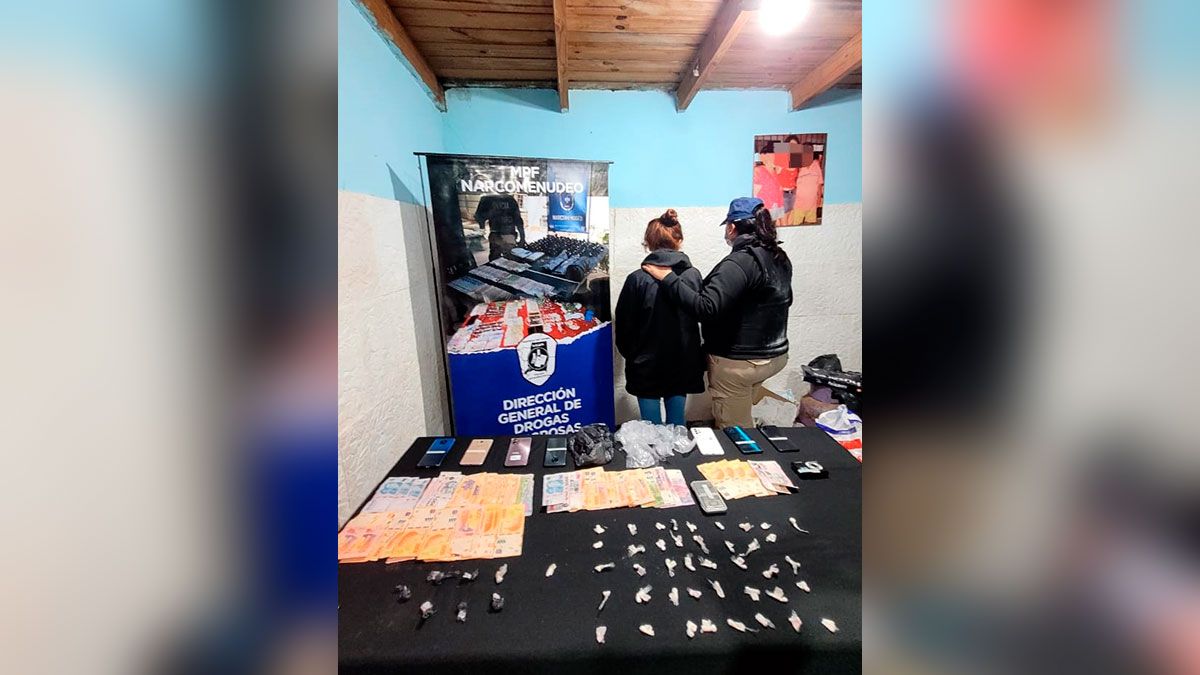 Durante el procedimiento, el personal interviniente logró secuestrar una importante cantidad de sustancias ilícitas que se encontraban listas para la venta al menudeo. Se trataba de cocaína y marihuana fraccionadas, además de una suma considerable de dinero en efectivo, teléfonos celulares, elementos utilizados para el fraccionamiento y una motocicleta sin dominio visible.