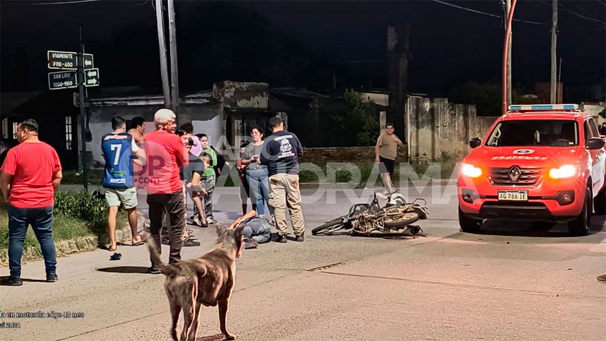 Un fuerte accidente de tránsito ocurrió durante la madrugada de este sábado en el barrio Sarmiento, donde una motocicleta y una camioneta colisionaron en la intersección de las calles Viamonte y San Luis.
