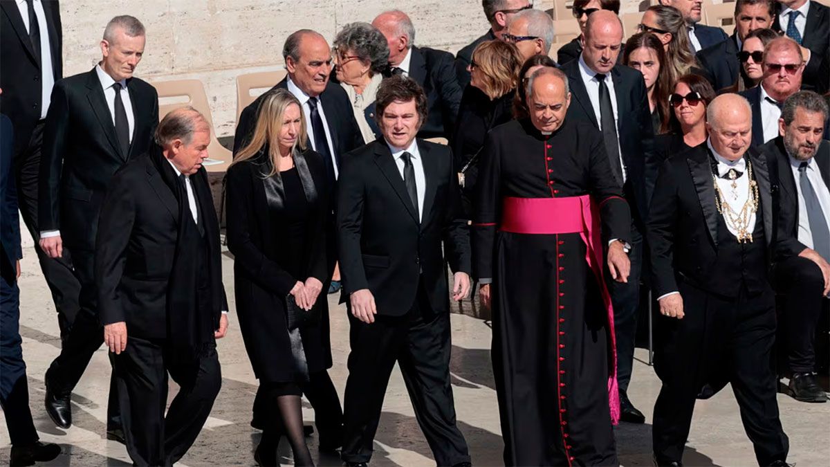 El presidente Javier Milei llegó al funeral del papa Francisco, en la Plaza de San Pedro, alrededor de las 4:45 horas de la Argentina. El jefe de Estado arribó acompañado de su hermana, Karina Milei, y de funcionarios del Gabinete nacional.