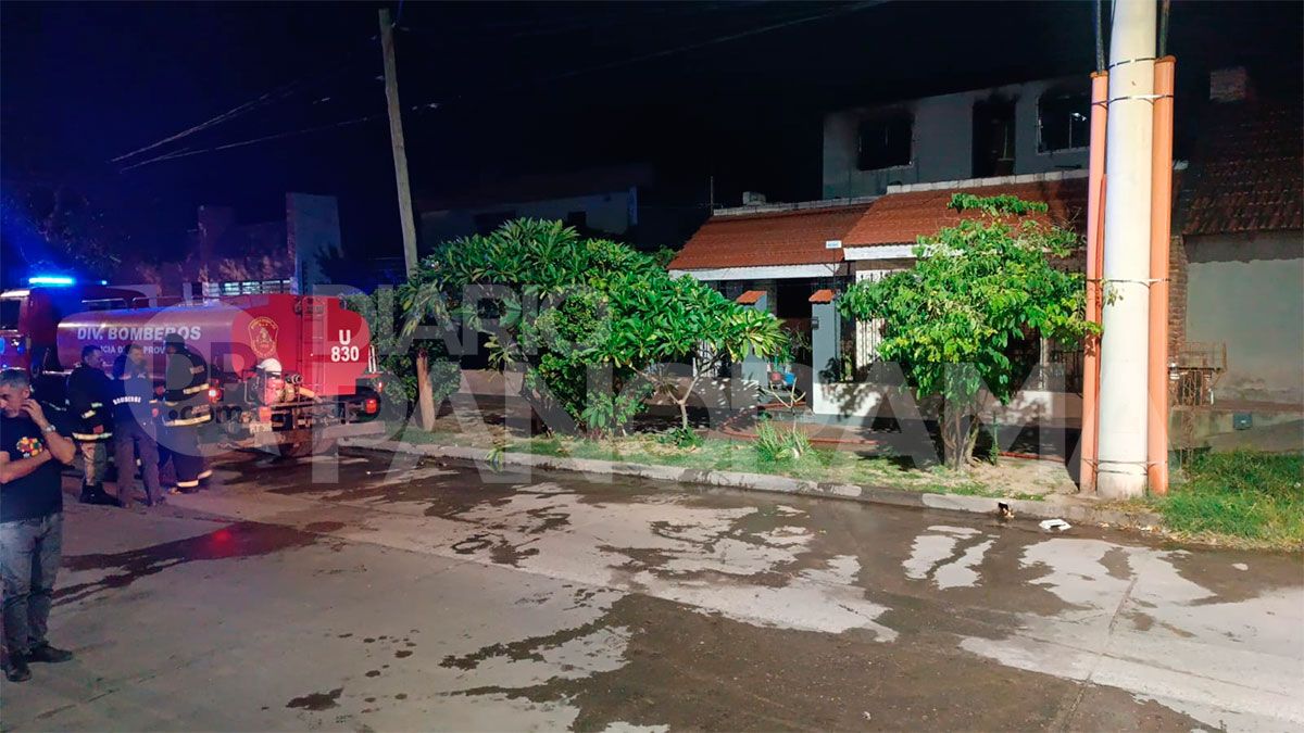 Incendio en el barrio Cabildo. Bomberos de la Policía de la Provincia y Voluntarios de Capital trabajaron en el lugar.