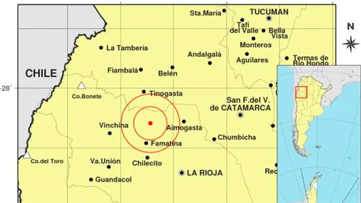 El movimiento telúrico se registró exactamente a las 13:04. El Inpres informó que el epicentro fue a 108 km al NO de La Rioja; 167 km al O de San F. Del Valle De Catamarca; 37 km al N de Famatina.