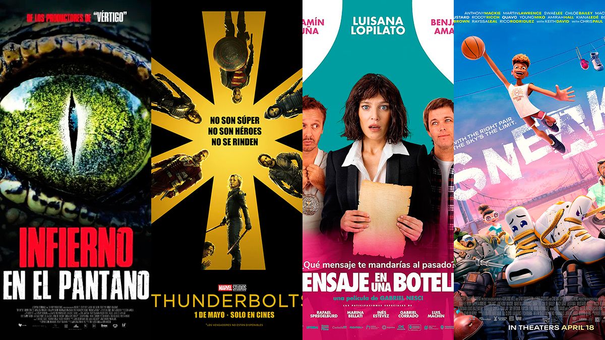 En primer lugar, llega el nuevo blockbuster de Marvel Studios. Se trata de Thunderbolts* cinta protagonizada por Florence Pugh y Sebastian Stan. Pero además, se suma la cinta argentina Mensaje en una botella, con Luisana Lopilato y Benjamín Vicuña en los protagonicos.