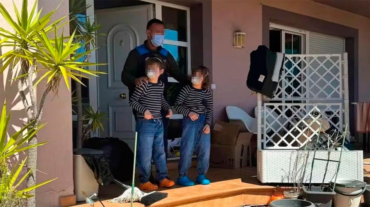 Según revelaron, la madre pidió a los policías y miembros de los Servicios Sociales que tengan el máximo cuidado con sus hijos y primero les colocó tres barbijos a cada uno antes de dejarlos interactuar.
