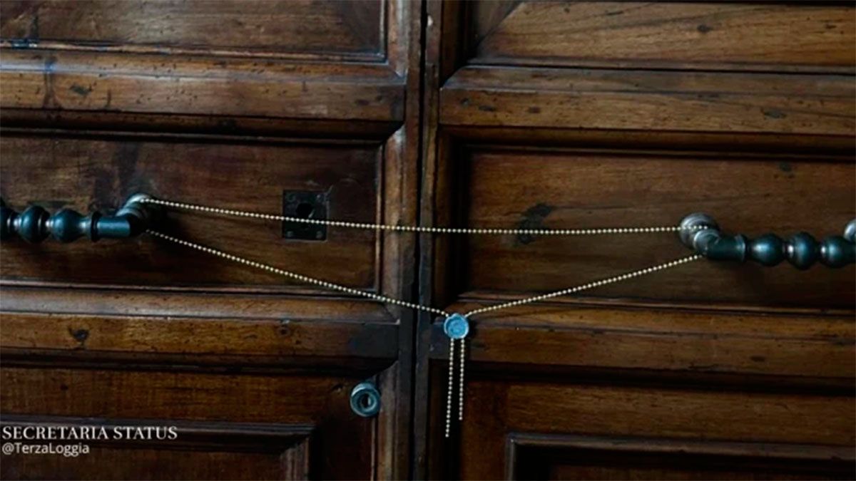 La Secretaría de Estado señaló en su cuenta oficial de X: "En el umbral del Cónclave, una Comisión presidida por el Sustituto para Asuntos Generales, e integrada también por el Comandante del GSP y el Subcomandante de la Gendarmería, procedió a cerrar los ingresos al Palacio Apostólico, colocando el sello 'Cónclave' y '2025'."
